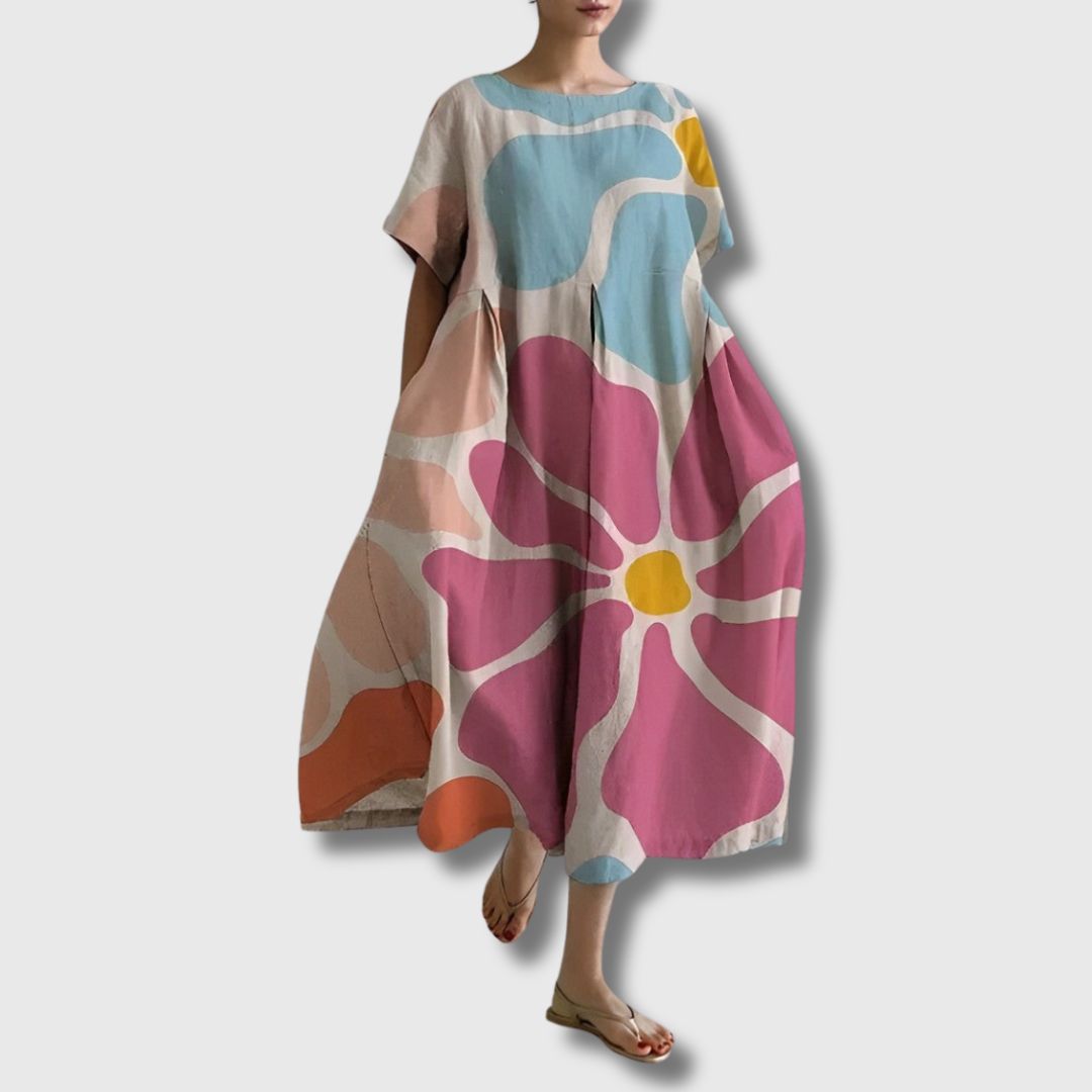 Dieses böhmische Blumenkleid ist für Frauen gedacht, die Romantik und Komfort miteinander verbinden möchten. Mit seiner fließenden Silhouette und den zarten Blumenmotiven ist es perfekt für sonnige Tage, informelle Ausflüge oder besondere Anlässe. Leicht und luftig, dieses Kleid erlaubt es Ihnen, kühl zu bleiben und gleichzeitig einen natürlichen Charme auszudrücken.